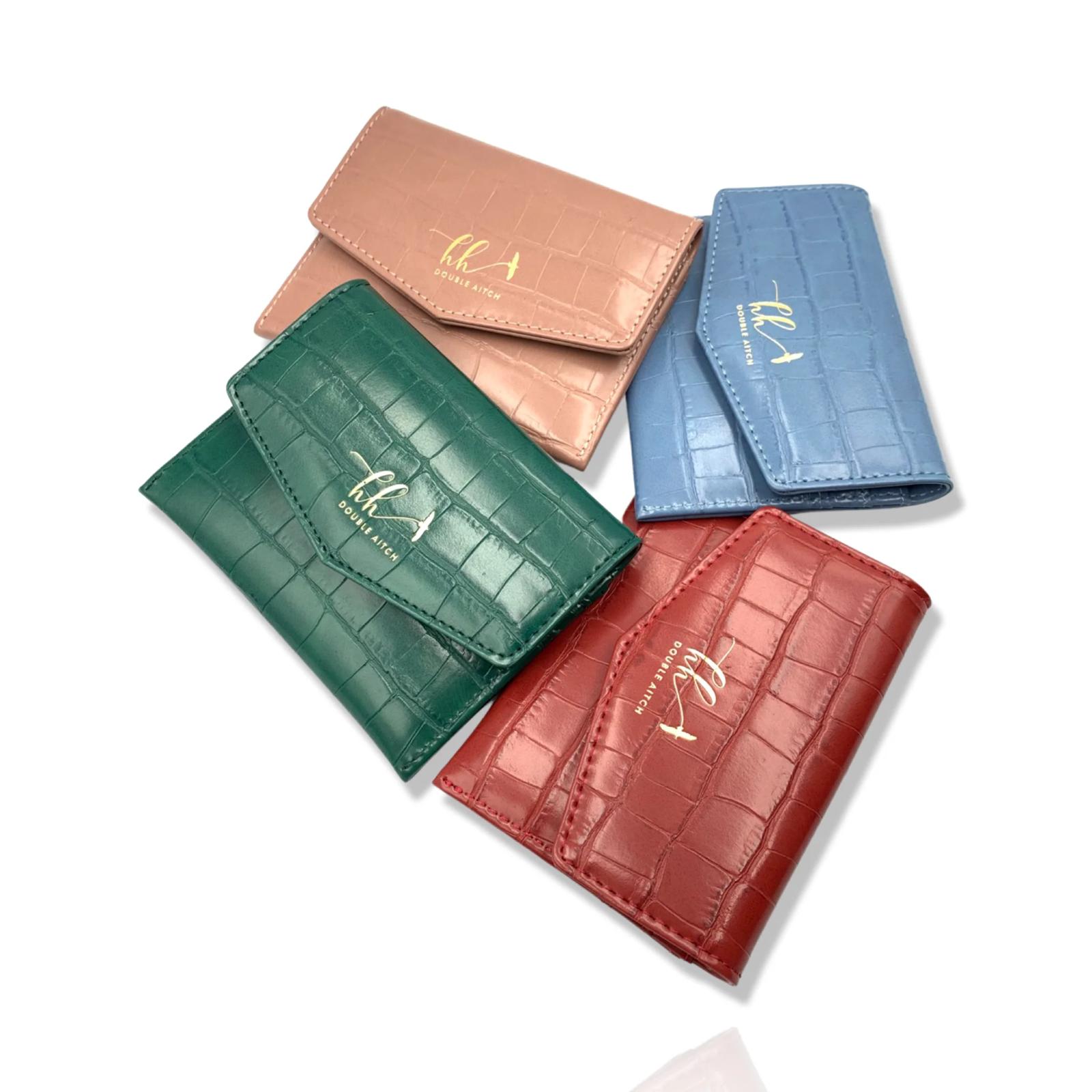 حامل بطاقات رفيع بنقشة جلد التمساح - صغير الحجم، أنيق وعملي